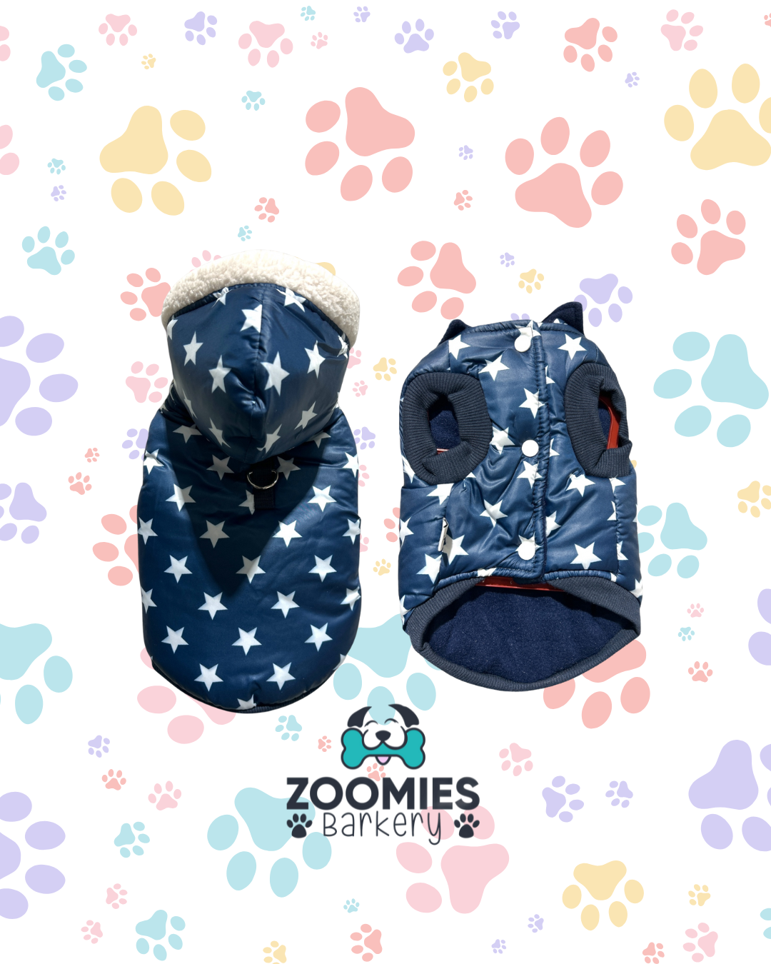 Available in two beautiful colors with a hood. This puff coat is both practical and stylish. Soft, durable, and designed to fit just right, it keeps your dog looking great while staying warm on cold days.